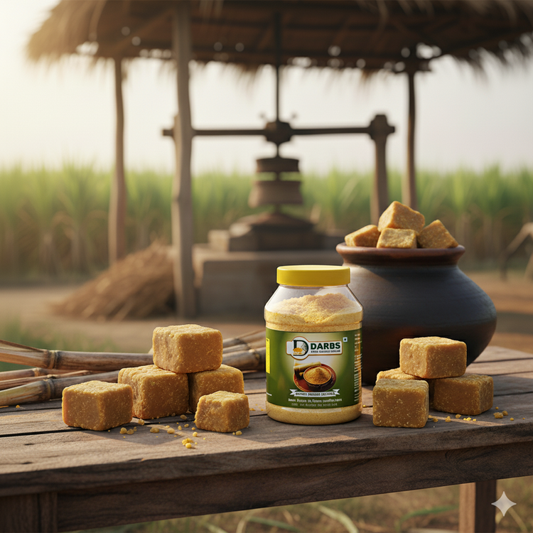 Darbs brings sachchi desi mithaas, made the traditional way — slow, handcrafted & unprocessed. Gaon ki mitti ki khushboo, mitti ka pyaar… sealed inside every pack. No chemicals. No refining. Bas asli gud ka swaad.